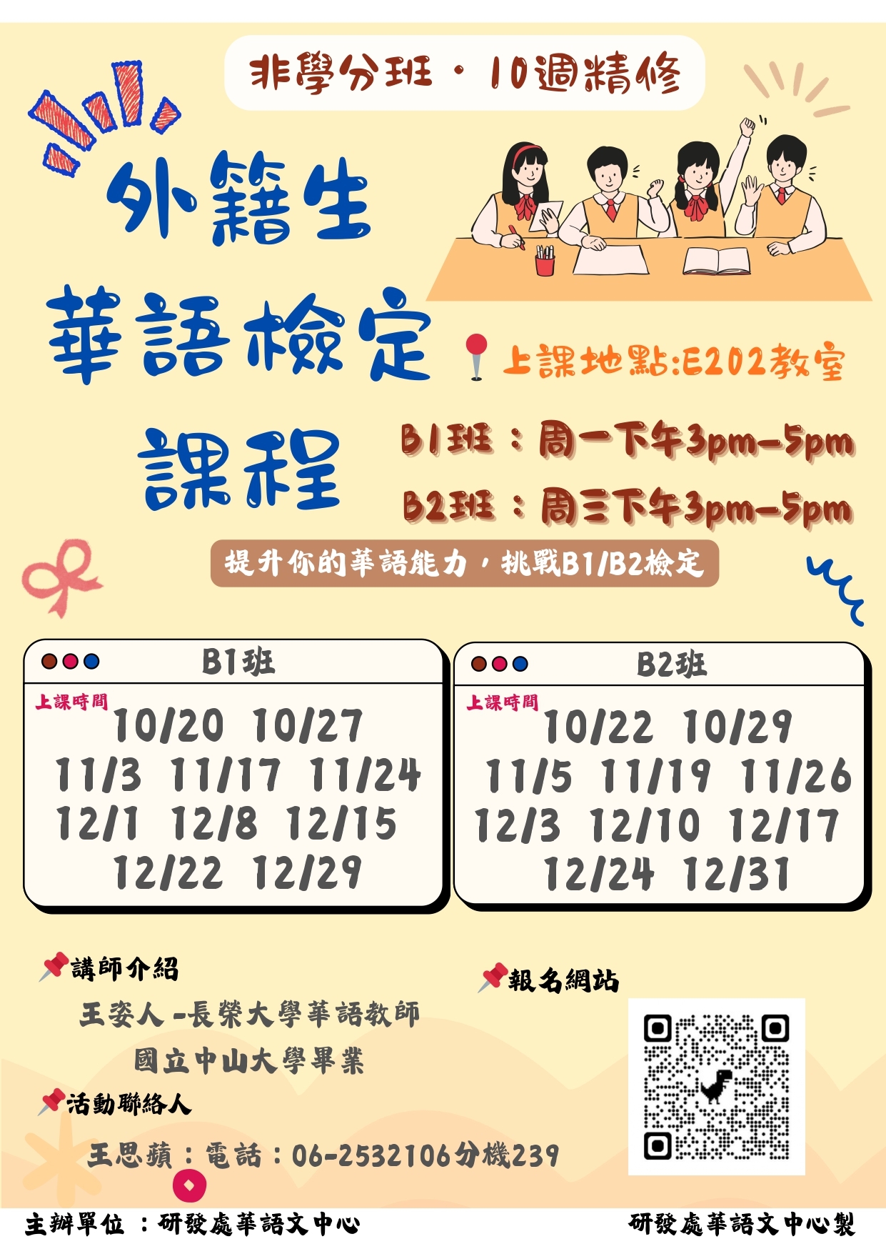 【課程】「華語檢定課程-B1及B2」(非學分班)現正報名中~