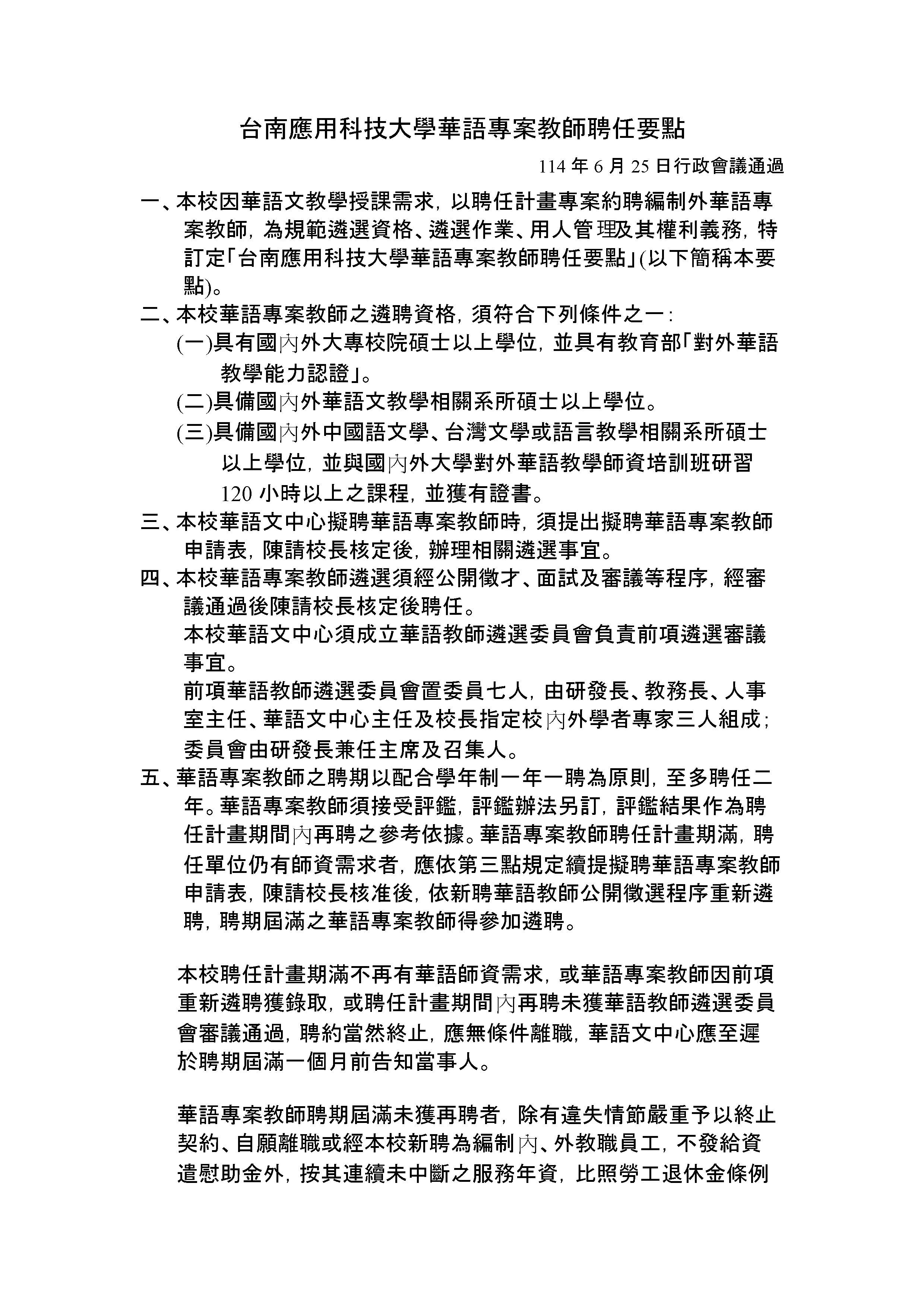 02-華語專案教師聘任要點