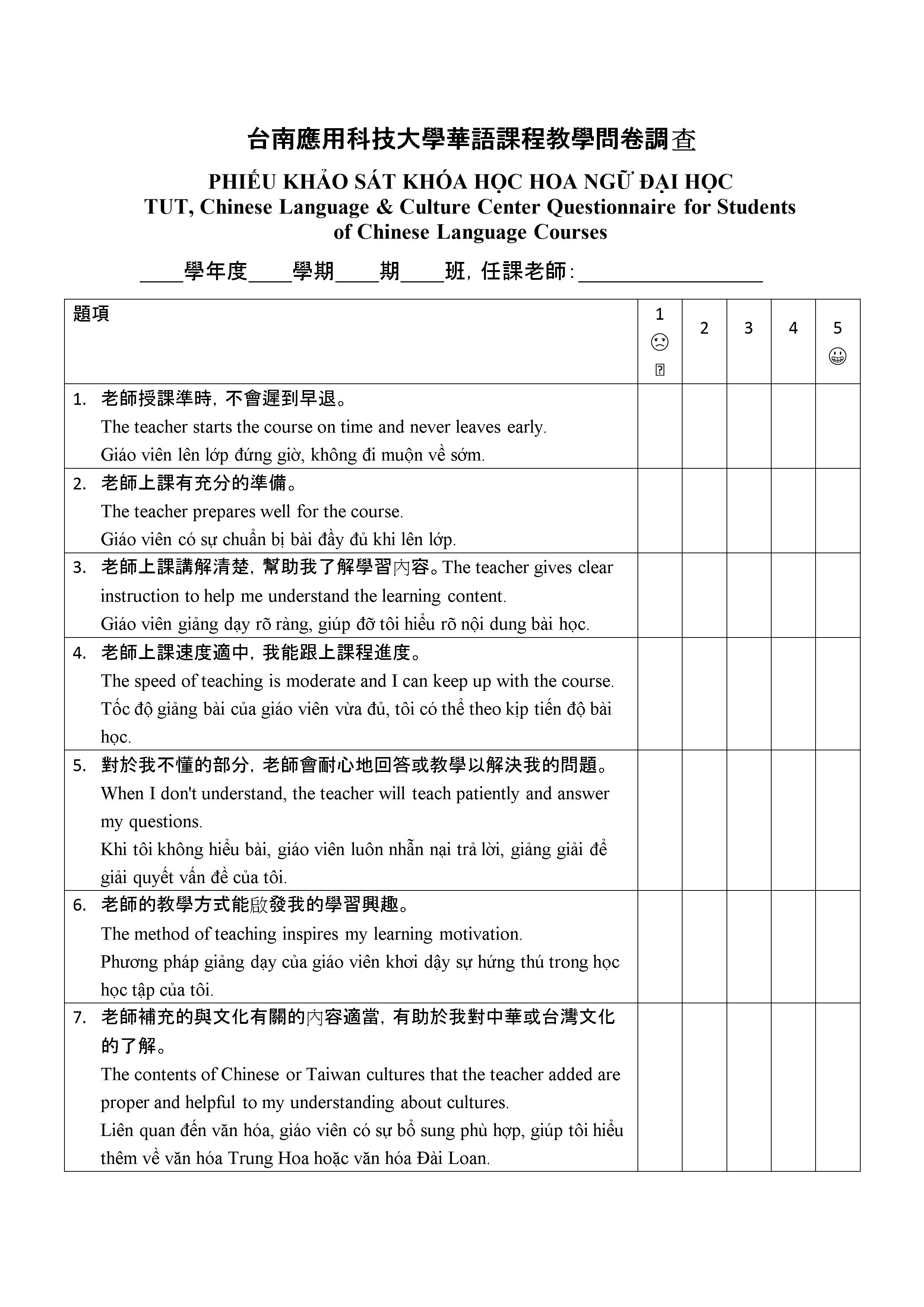 華語課程教學問卷調查